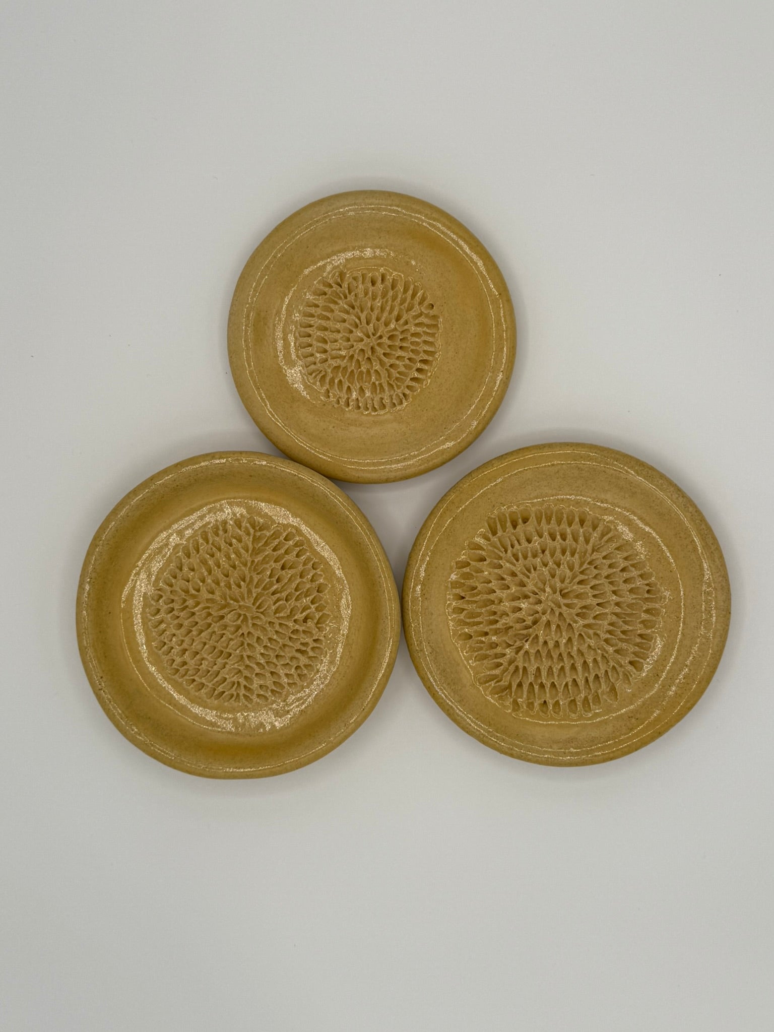 Add a touch of artisan charm to your kitchen with these handmade ceramic garlic graters. Each piece is wheel-thrown and finished with a rich, earthy glaze that highlights its unique textured design. Perfect for effortlessly grating garlic, ginger, nutmeg, or even zesting citrus, these graters combine both beauty and function. Their compact size makes them easy to use, clean, and store, while the artistic finish ensures no two are exactly alike.