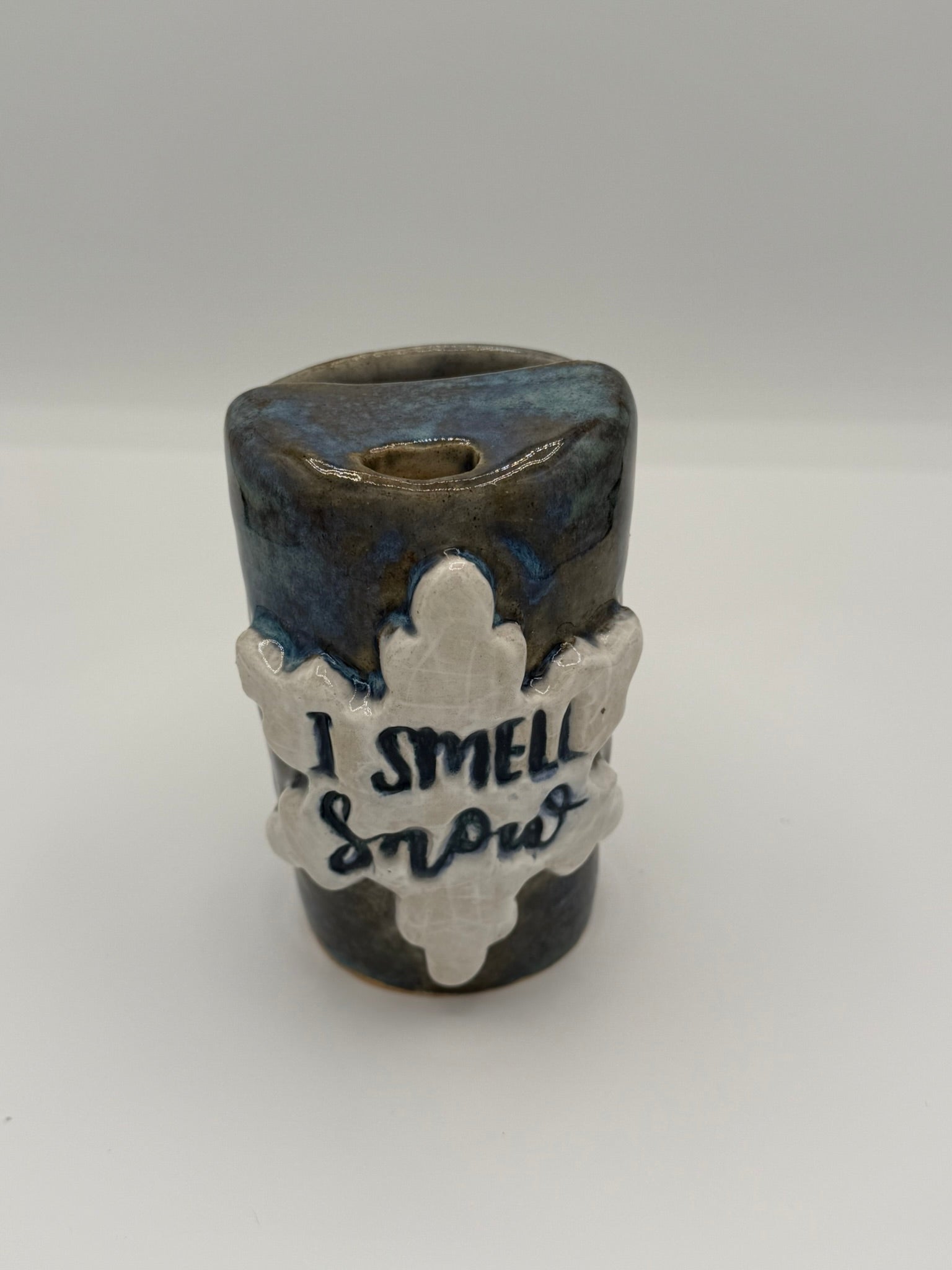 Sip in style with this handmade ceramic tumbler, perfect for smoothies, iced coffee, or your favorite cold drinks. Designed with a convenient straw hole, this cup is ideal for eco-friendly, reusable straws. The rich two-tone glaze — ocean blue blending into deep charcoal — makes this tumbler a striking addition to your drinkware collection.